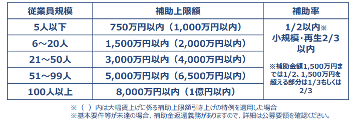 • 補助金額: 従業員数に応じて100万円~8000万円